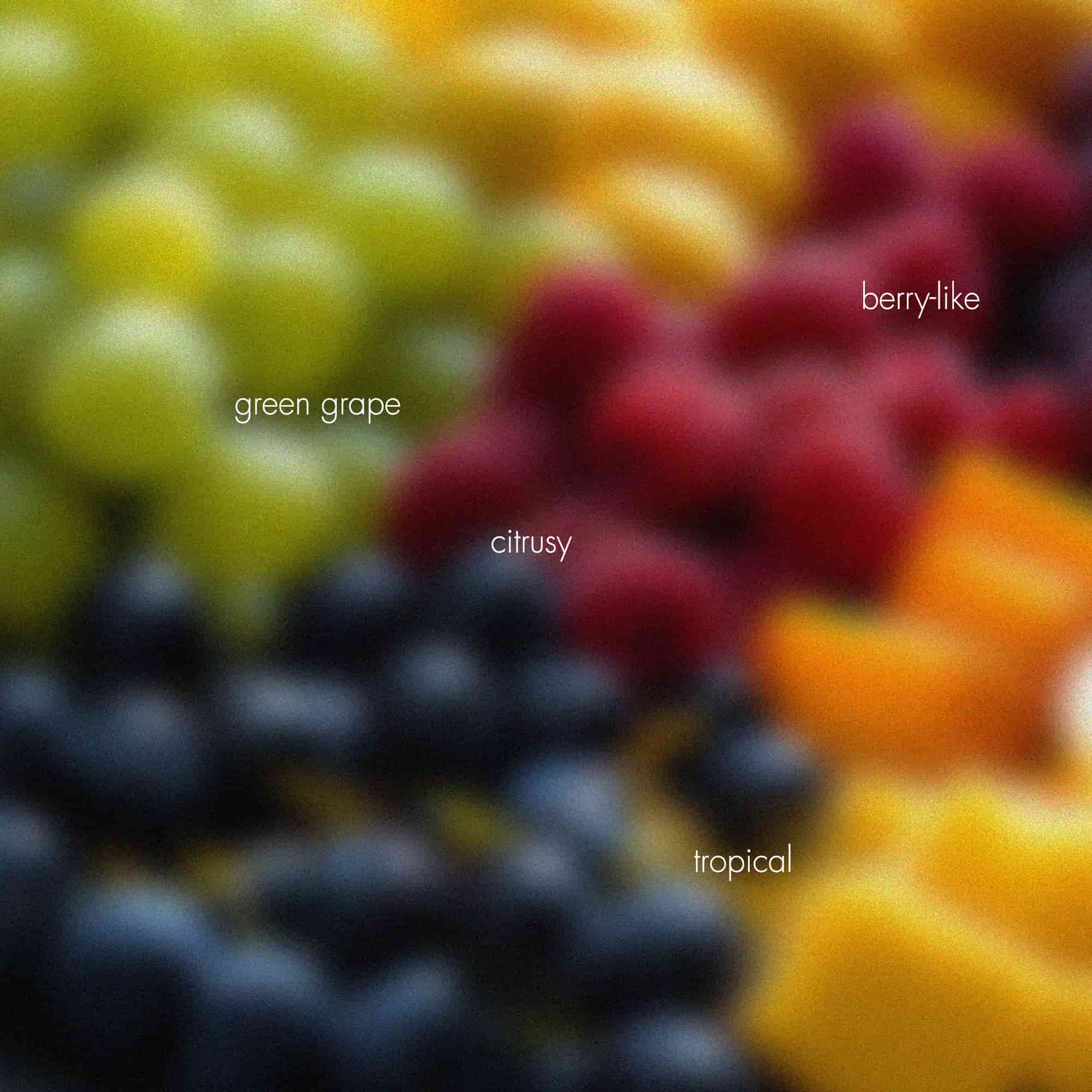 - طعمیادها: انگور سبز، استوایی، توتجات، مرکبات