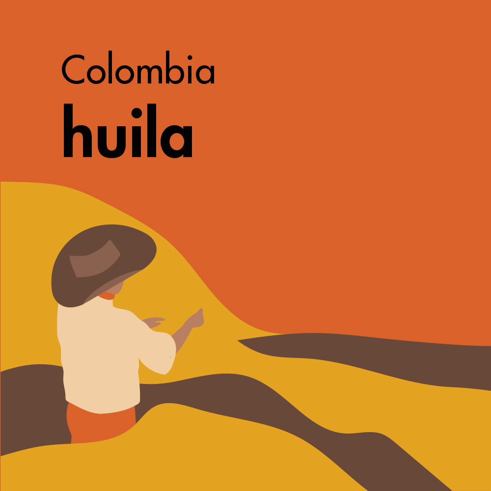 قهوه تک خاستگاه کلمبیا هویلا در ارتفاع ۱۵۰۰ متری از سطح دریا در منطقهی هویلا در کلمبیا واقع شده است. زیرگونههایش تیپیکا و کاتورا میباشد و توسط خانمها برداشت شده است. قهوهی هویلا که بهصورت خیس فرآوری شده است اسیدیتهی عیان، تنواری متوسط و کاراکتری میوهای و آجیلی دارد.