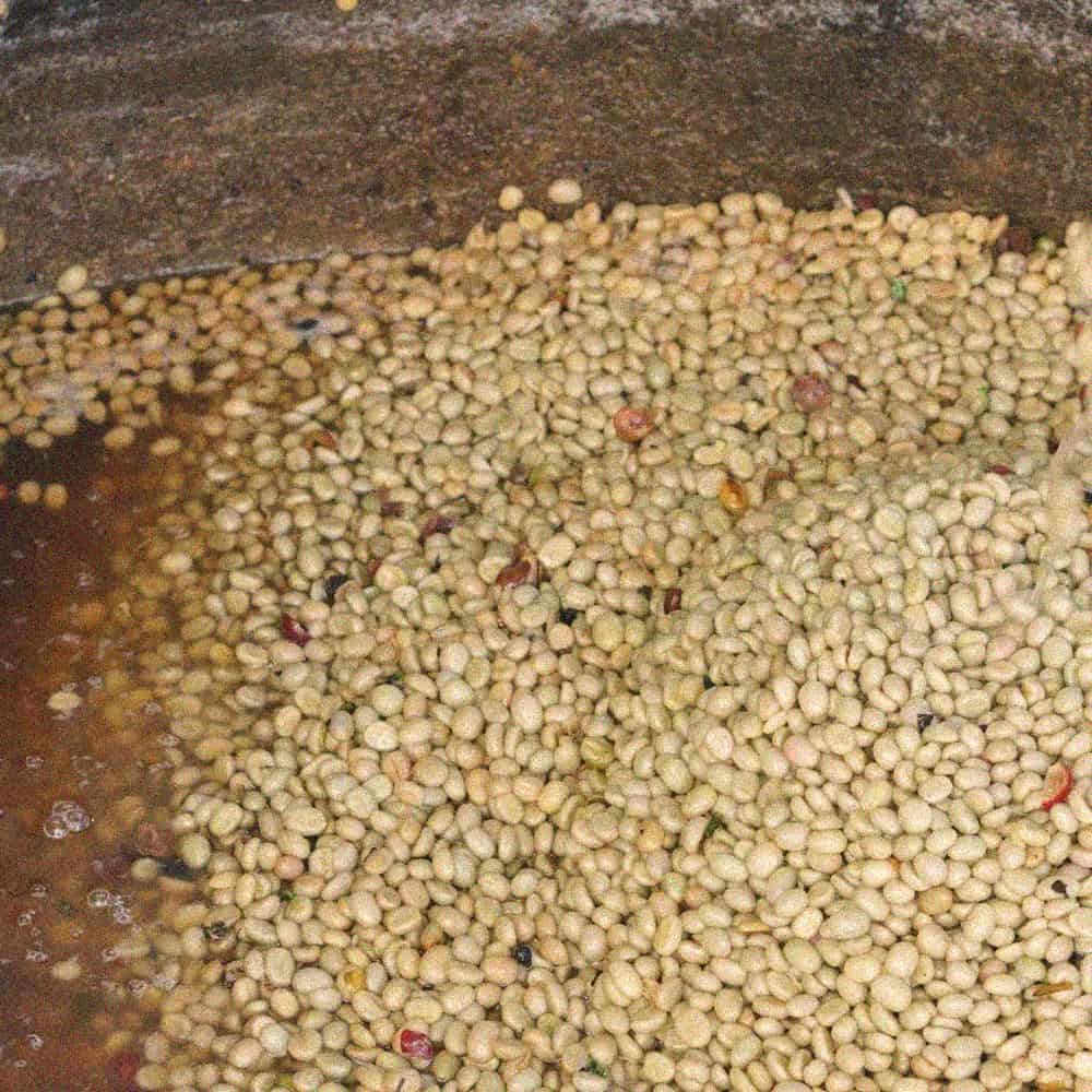 - فرآوری قهوه کنیا الگُن به صورت شسته شده انجام میشود، که در آن گیلاسهای قهوه برای حذف پوست بیرونی، پالپ شده و سپس برای حذف باقیماندههای میوه تخمیر میشوند. این روش، اسیدیتهی واضح و شفافیت قهوه را افزایش میدهد و ویژگیهای طبیعی مرکباتی و گلی آن را برجسته میکند. به عبارتی، در فرآوری شسته شده ( تر) تمرکز اصلی بر هر آن خصیصهای است که دان قهوه از خود نشان میدهد.